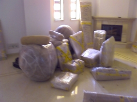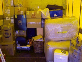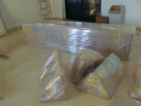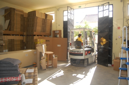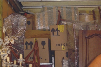 Administrador dos Transportes Beleza - Sr. Luís Beleza; móvel embalado para viagem intercontinental.